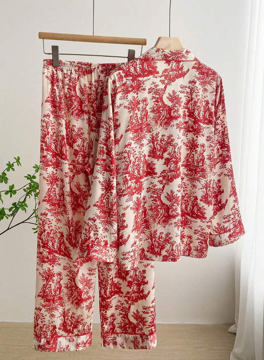 Pyjama Femme Satin de Soie Imprimé – Chemise & Pantalon 2 Pièces ÉlégantPrix habituel €43,00 EURPrix habituelPrix unitaire / par-