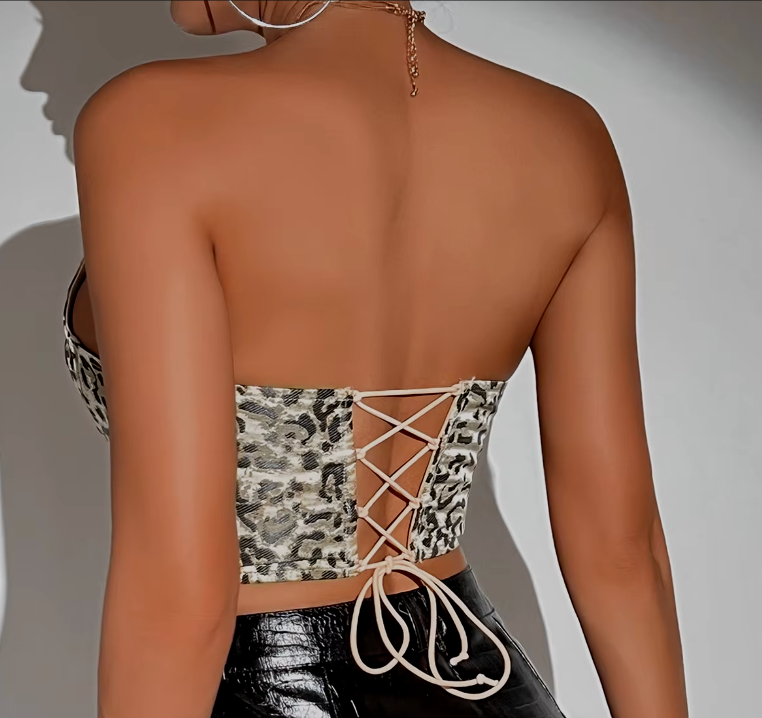 Optez pour ce corset léopard pour un look à la fois sauvage et sophistiqué, et apportez à votre garde-robe un accessoire de mode qui attire tous les regards.