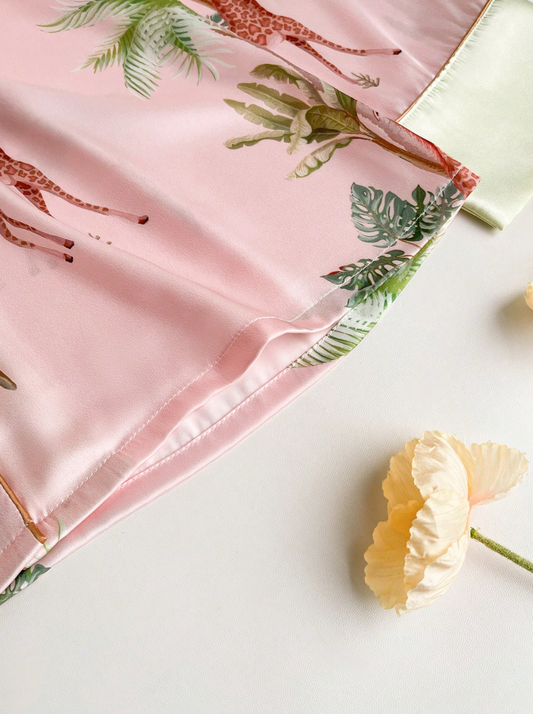 Pyjama Femme Satin Tropical – Imprimé Animal, Chemise & Pantalon