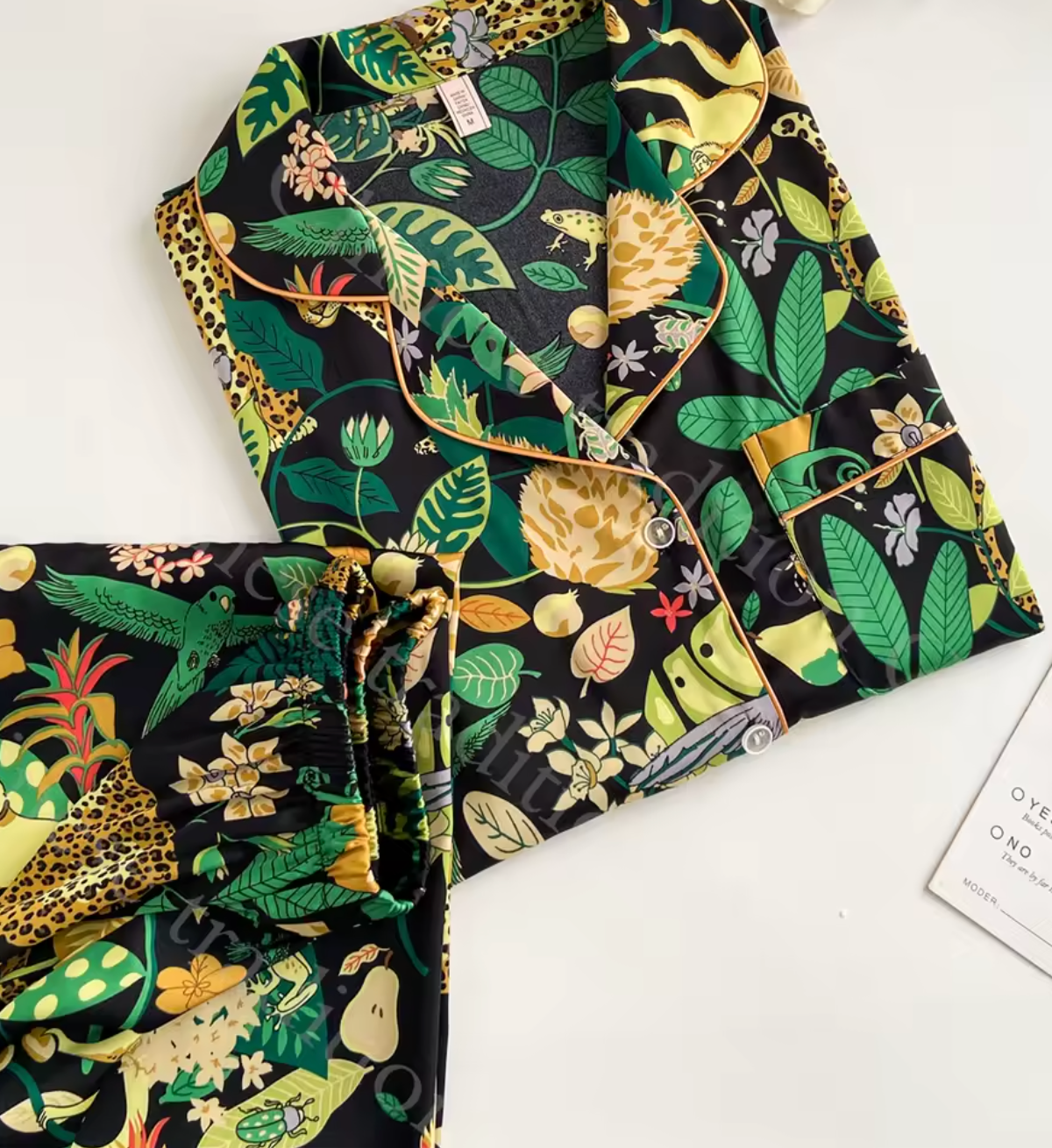 Pyjama Femme Satin Imprimé Léopard – Ensemble Chic Printemps