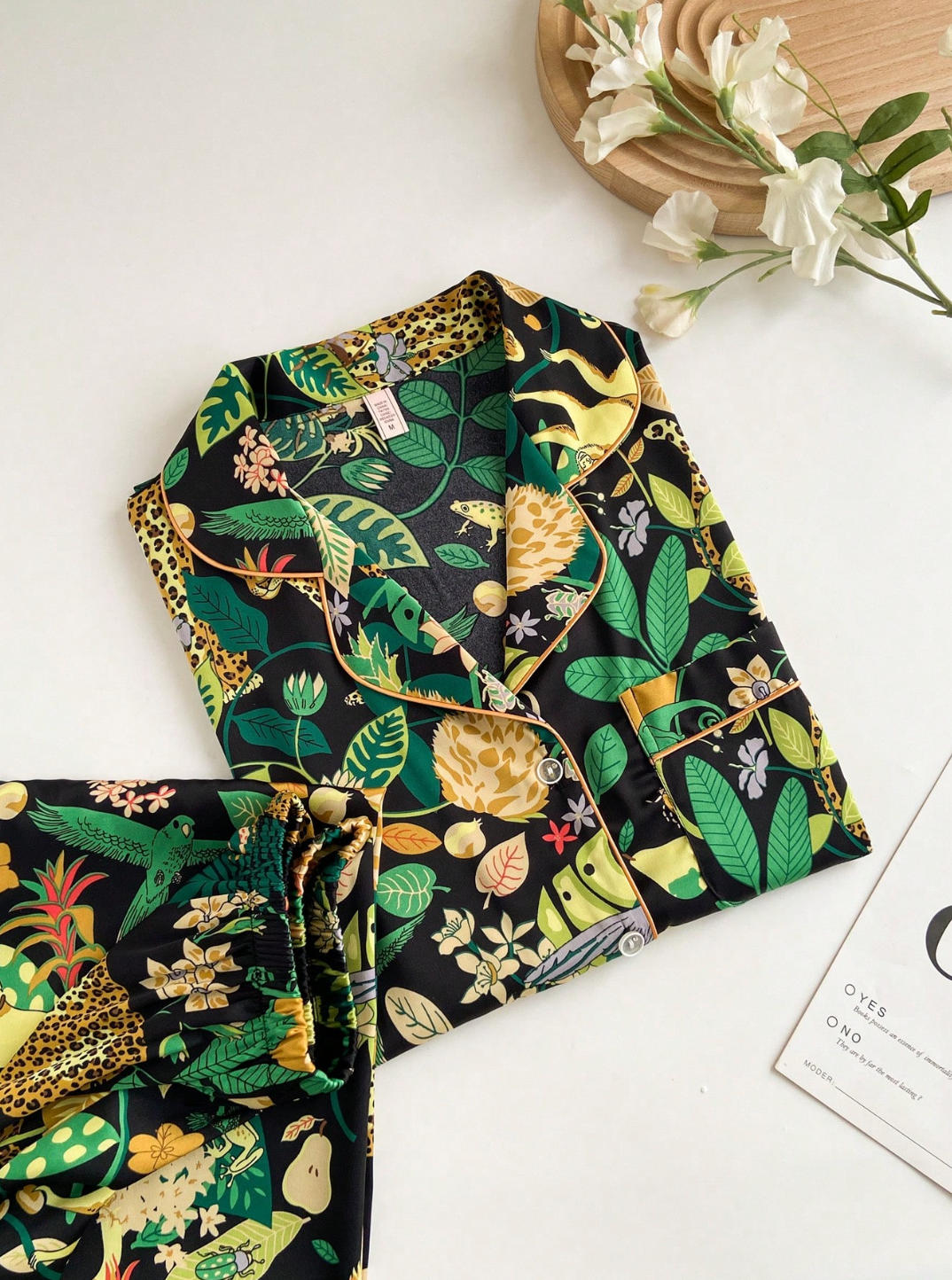 Pyjama Satin Femme Léopard – Ensemble 2 Pièces Décontracté & Tendance