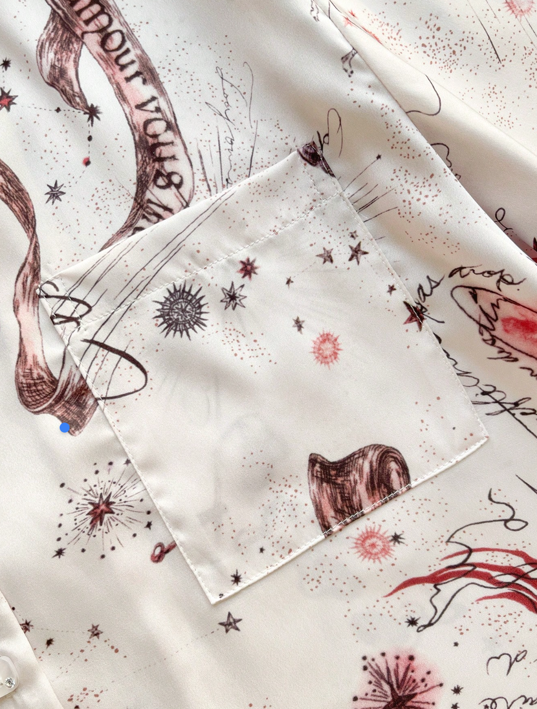 Pyjama Femme Satin Imprimé Rose – Ensemble 2 Pièces Élégant