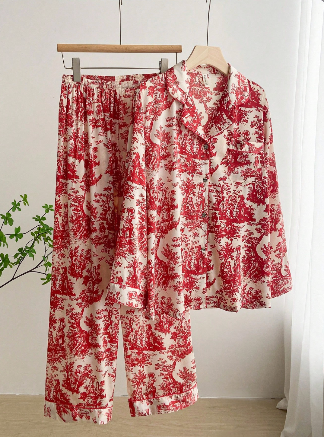 Pyjama Femme Soie Glacée Imprimé Encre – Élégance & Confort