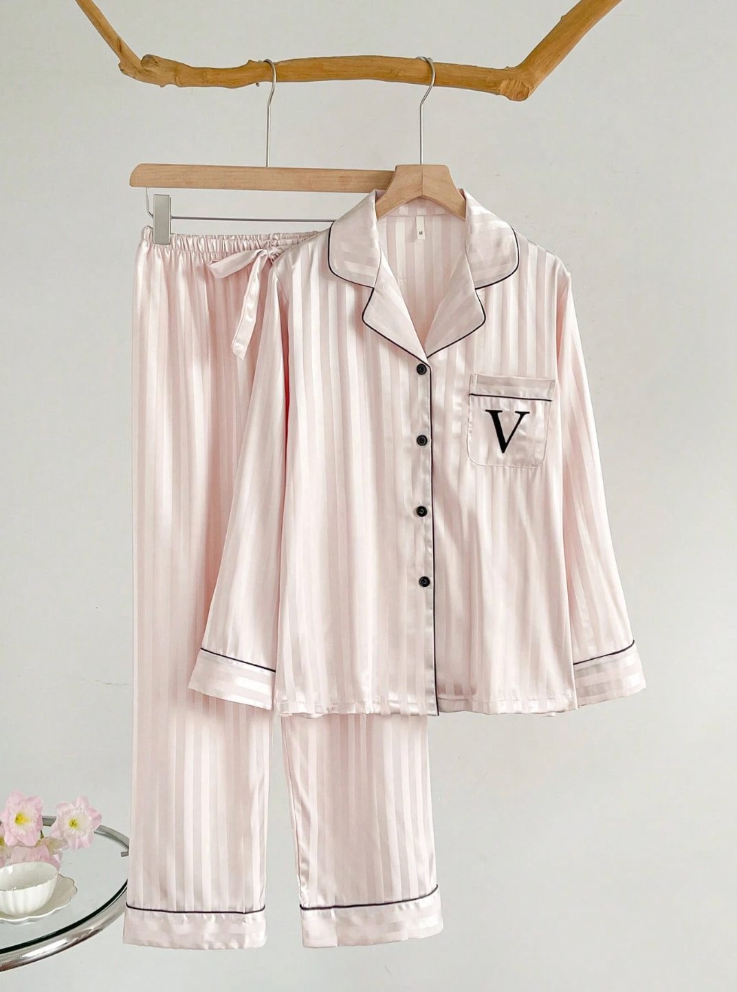Ensemble Pyjama Rayé Rose – Confort Automnal
